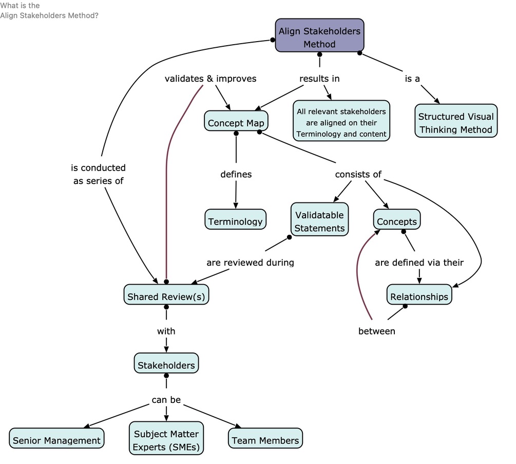 I will present a straightforward method using a simple visual notation (Concept Maps) to drive alignment with all relevant stakeholders in a 1.5-hour session.